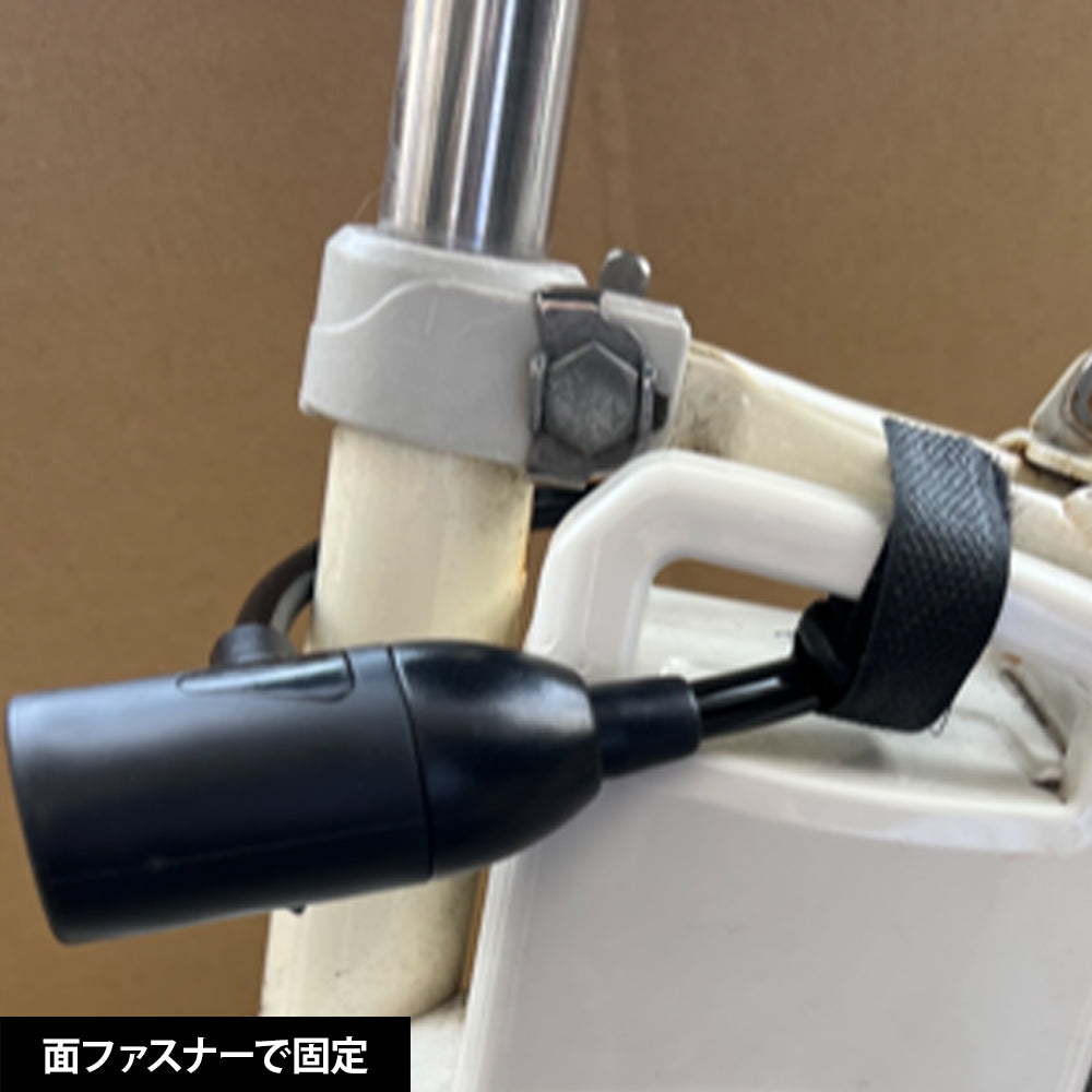 スリムな先端形状でバッテリーのグリップ部へ通しやすく、柔軟なワイヤー構造により扱いやすさと防犯性を両立。表面はソフトカバー仕様で車体を傷つけにくく、キーは使いやすいリバーシブルタイプを採用しています。