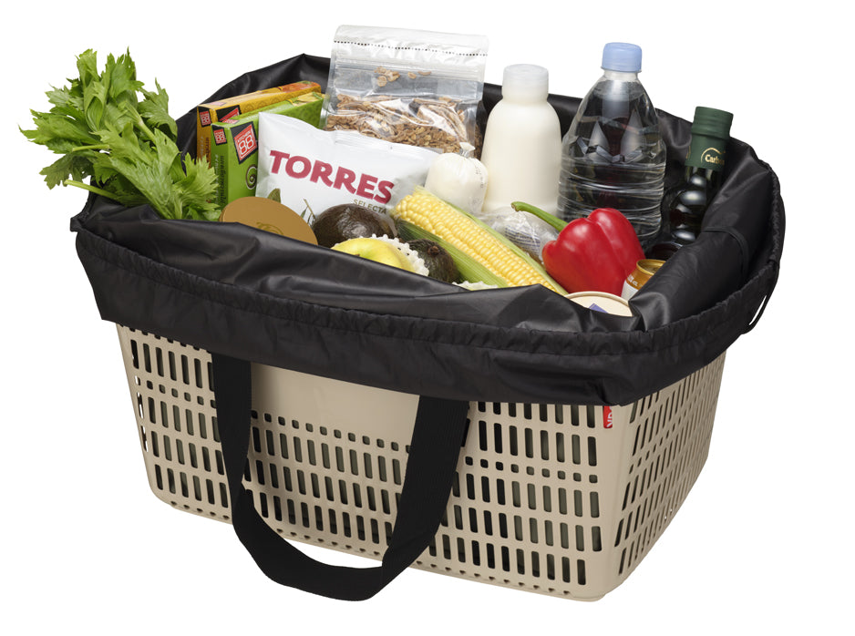お買い物ではレジカゴから袋ごとバッグをそのままポンッと積んで、自転車ライフがめちゃラク。バッグは撥水加工&内ポケット付きだから、急な雨や保冷剤もOK。